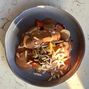 “Belçika Çikolatası,muz,çilek ve yumuşak dokulu puff ile servis edilir”